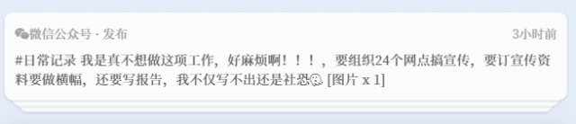 😂 我是真不想做这项工作,好麻烦啊!!!,要组织24个网点搞宣传,要订宣传资料要做横幅,还要写报告,我不仅写不出还是社恐👻
