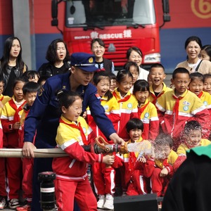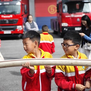 今年是第十七个“防灾减灾”日,学校组织一次校外体验活动,每个班挑选 4 名学生由家长陪同到消防队学习体验,消防员叔叔分别给孩子们讲解了具有代表性的三种消防车、水下搜救机器人、消防站斗服、灭火机器人等项目,最喜欢的还是机器人了,摇控的很酷,都想体验一下,但由于人多我儿子没能体验到。